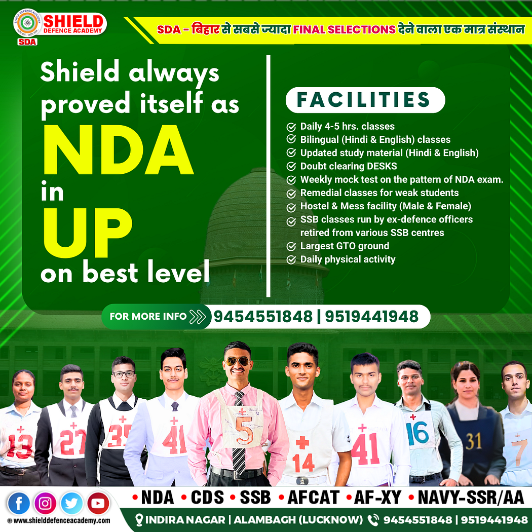 If your goal is the NDA, your journey should start with the right mentor. Shield Defence Academy has proven itself as a trusted name not just in Lucknow but across Uttar Pradesh. With expert faculty, unbeatable infrastructure, and a success rate that speaks volumes, it truly is the ultimate launchpad for your NDA dream. So, are you ready to take the leap?